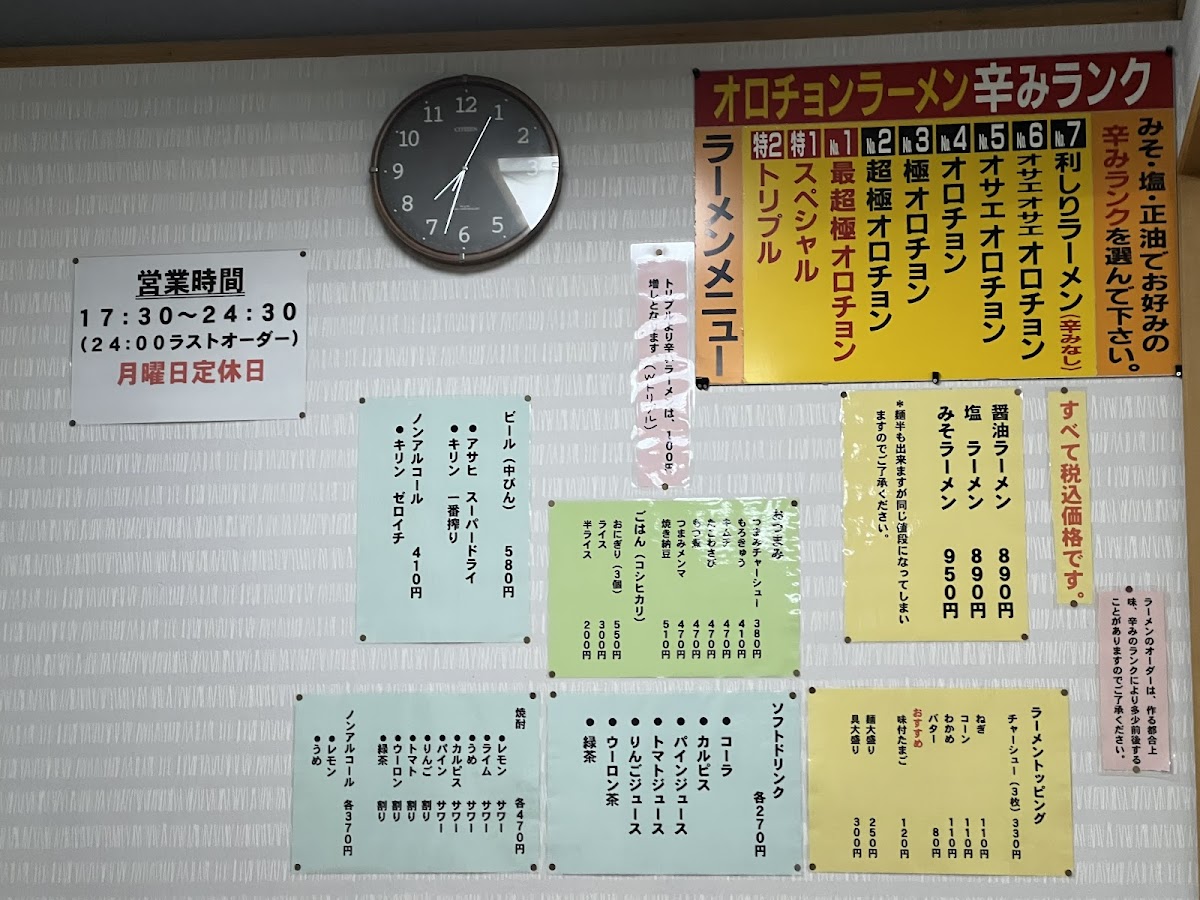 The menu at Orochon Ramen Rishiri Isehara offers a variety of flavorful ramen dishes, with a strong emphasis on rich, comforting broths. One of the most popular options is the みそラーメン オサエオロチョン, a miso-based ramen that stands out for its deep, savory taste. Another crowd favorite is the メンマ, a delicious side dish of tender bamboo shoots that perfectly complement the ramen. For those who enjoy a more complete meal, the 味付たまご adds a soft-boiled, marinated egg that enhances the overall experience. The restaurant also features heartier offerings like the 味噌ラーメン6番具大盛麺大盛チャーシュー入り, which includes a generous portion of miso ramen topped with extra noodles and char siu, making it a filling choice for larger appetites. To accompany the ramen, the おつまみチャーシュー ビール serves as a great side dish, pairing well with a cold beer. Overall, the menu at Orochon Ramen Rishiri Isehara showcases a blend of traditional ramen staples and creative additions, ensuring there's something for every palate.